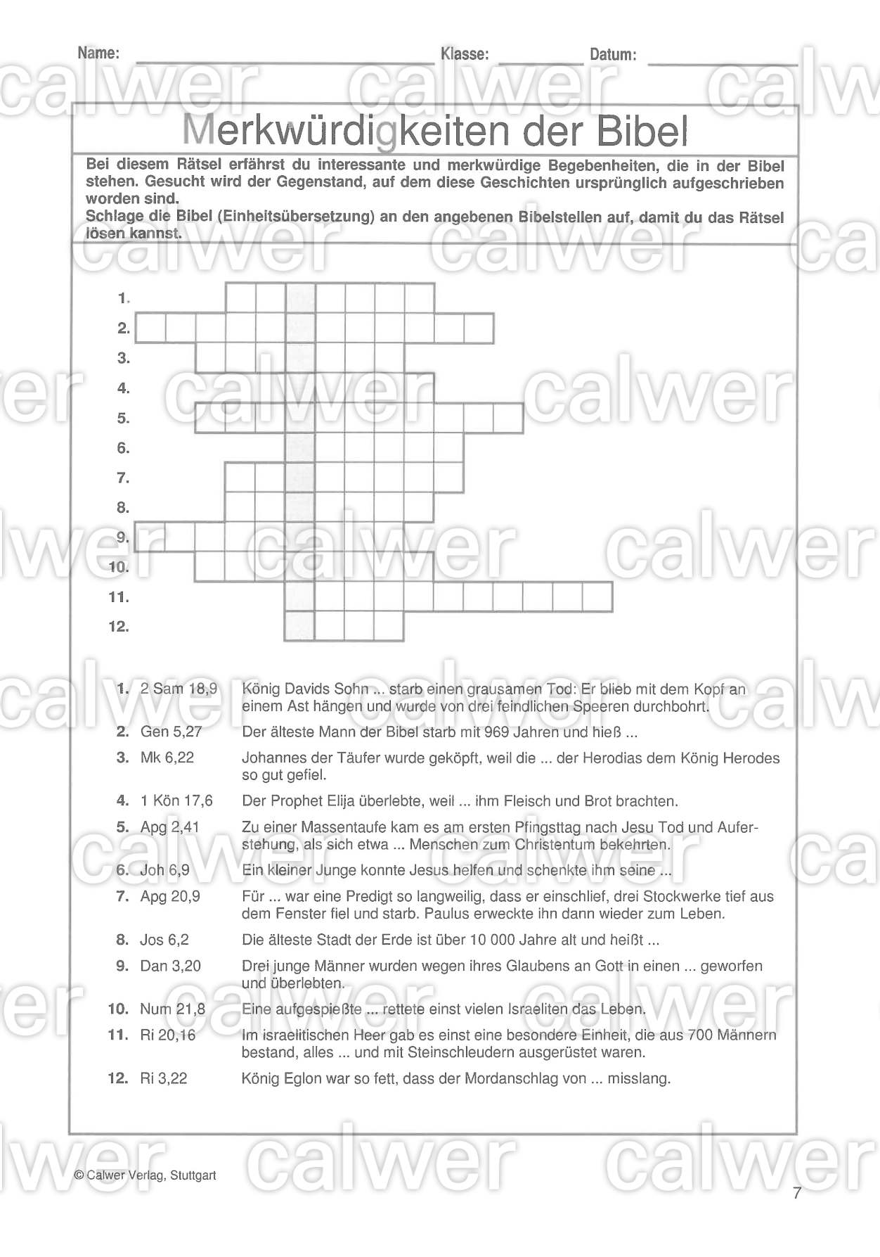Die Rätsel können in bestehende Unterrichtseinheiten integriert werden. Schwerpunkt in diesem Heft sind biblische Themen, das Kirchenjahr und die fünf Weltreligionen.