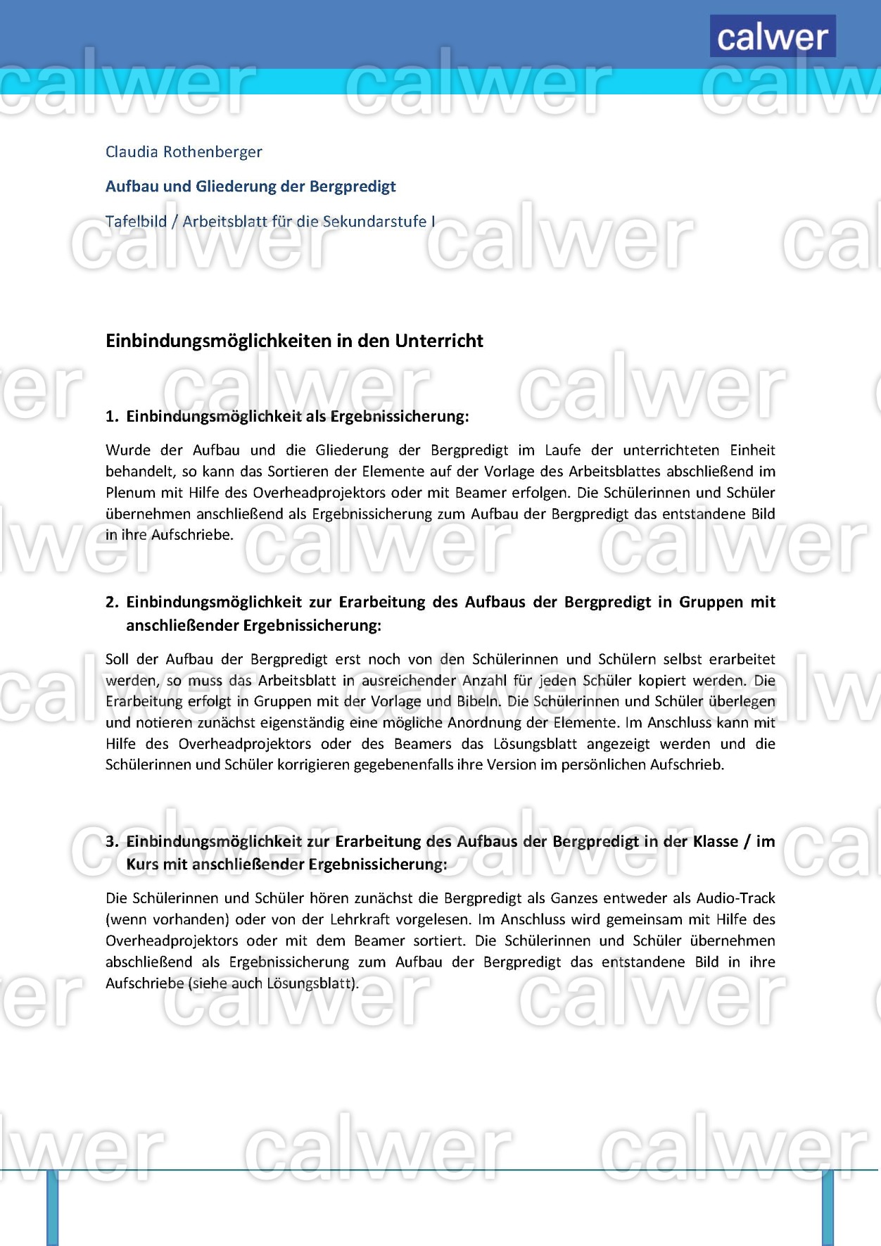 Tafelbild/Arbeitsblatt für die Sekundarstufe I Aufbau und Gliederung der Bergpredigt