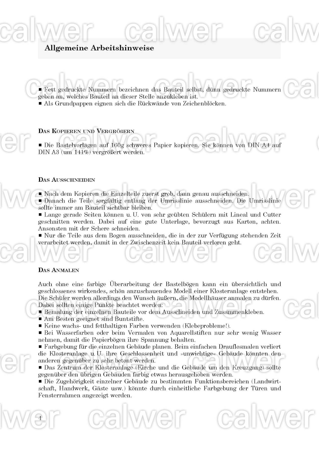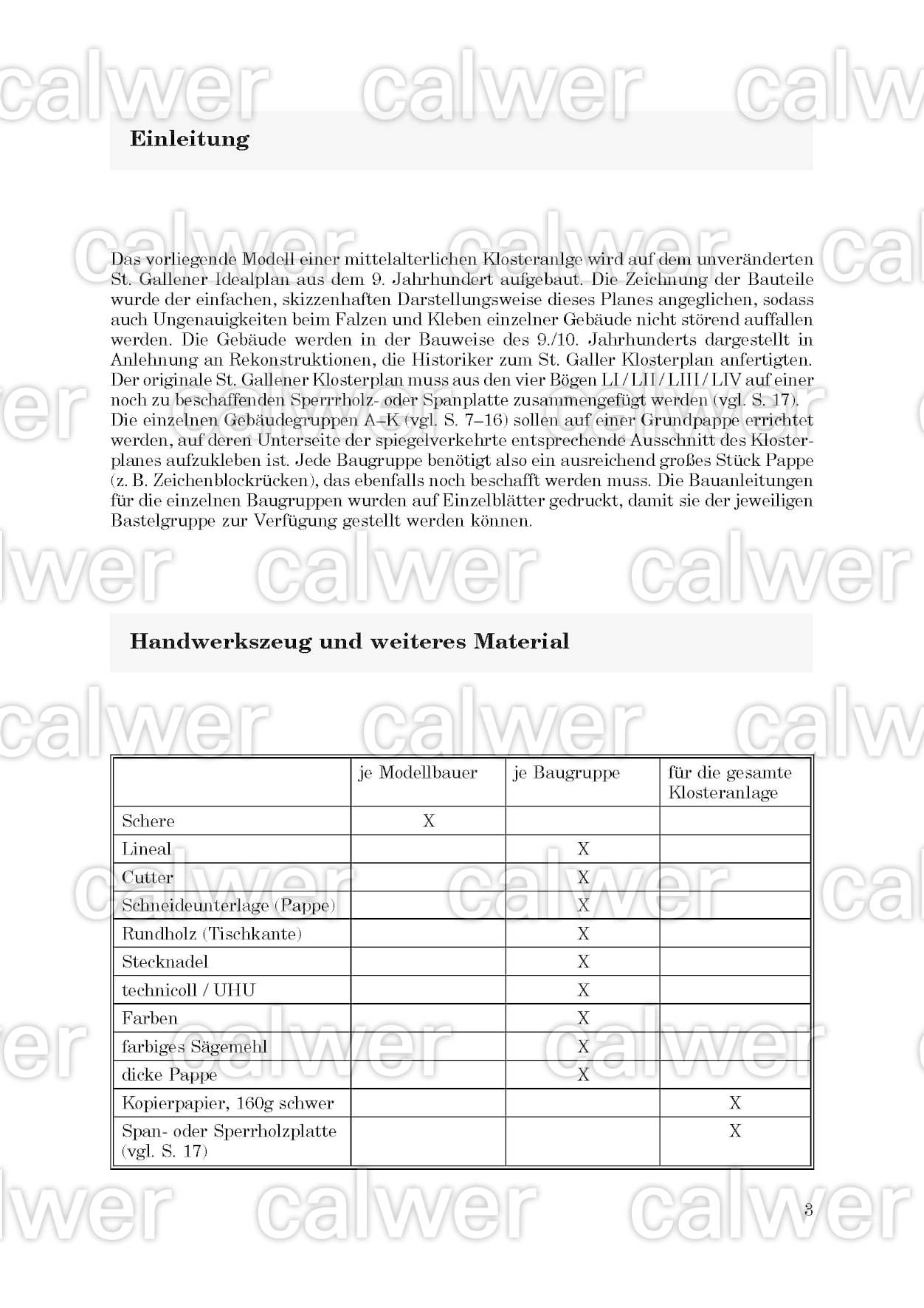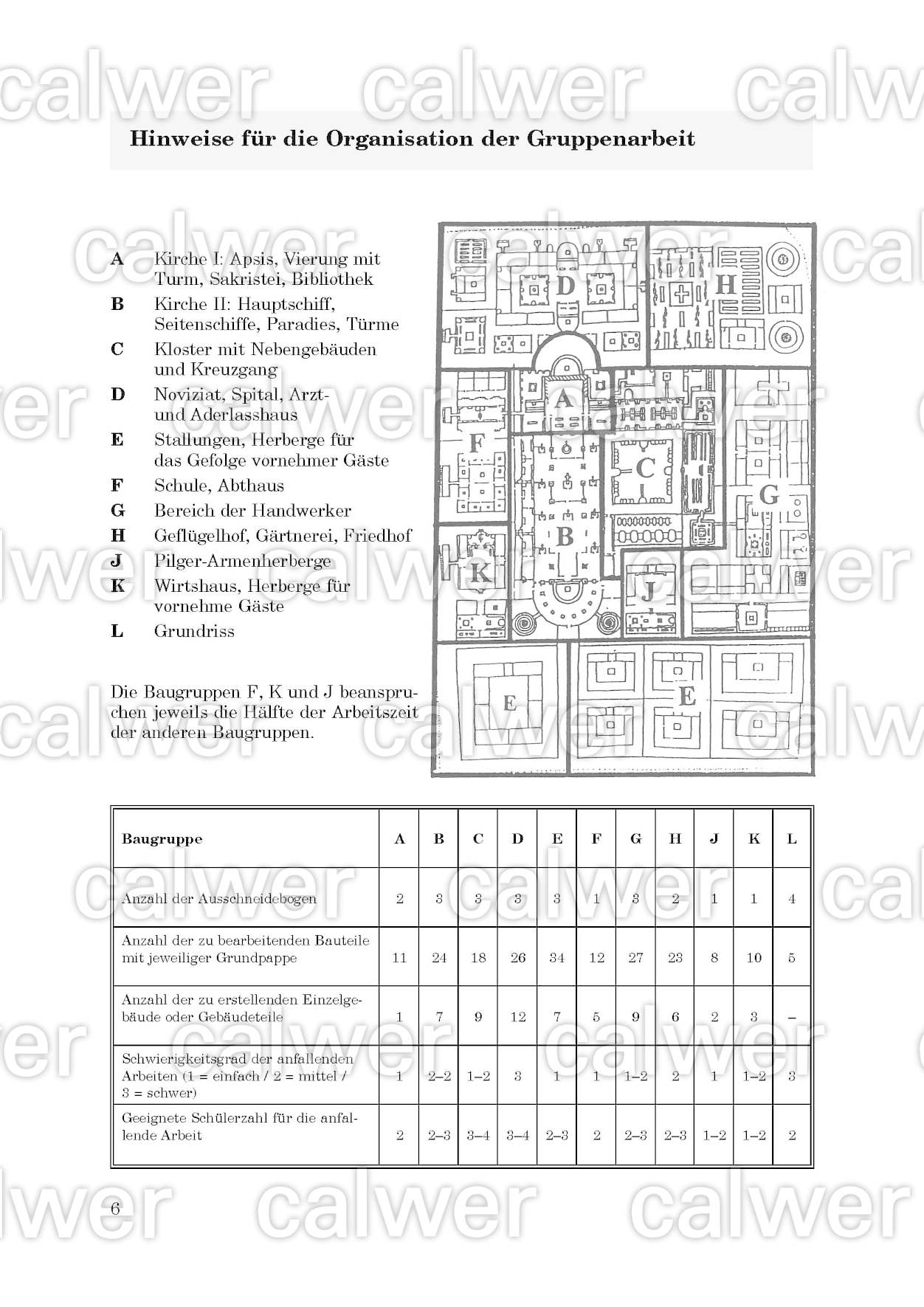 Das vorliegende Modell einer mittelalterlichen Klosteranlage wird auf dem unveränderten St. Gallener Idealplan aus dem 9. Jahrhundert aufgebaut. Die Mappe enthält neben den Bastelbögen ausführliche Beschreibungen der Modellteile sowie detaillierte Bastelanweisungen und didaktische Informationen.