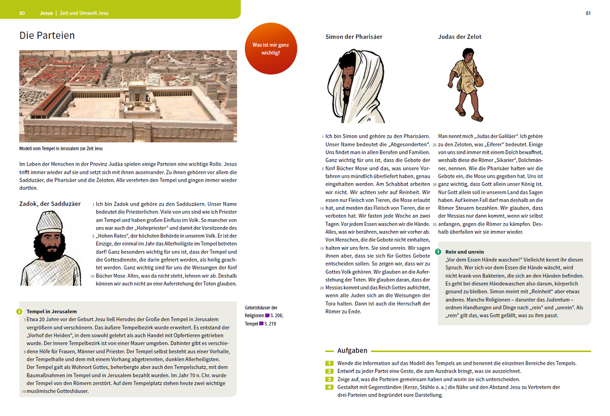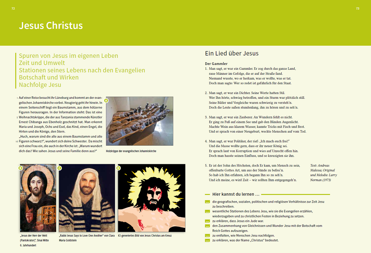 Es greift grundlegende Aspekte des christlichen Glaubens und der christlichen Theologie auf und setzt diese in Zusammenhang mit der Welt der Schülerinnen und Schüler. Die Jugendlichen entdecken, dass die Themen des Religionsunterrichts auch ihre eigenen Lebensfragen aufgreifen und werden ermutigt, über ihre Fragen zu diskutieren und eigene Meinungen zu bilden und zu äußern.