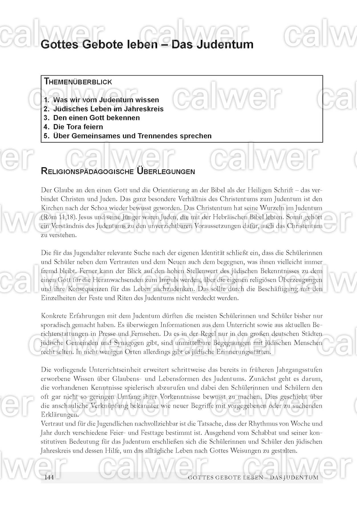 Unterrichtseinheit für das 7./8. Schuljahr Gottes Gebote leben - Das Judentum