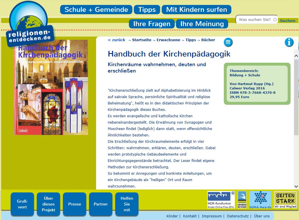 Das Handbuch der Kirchenpädagogik bietet eine Fülle von Informationen, methodisch-didaktischen Anregungen und konkreten Praxistipps für eine erfolgreiche kirchenpädagogische Arbeit in Gemeinde und Schule.
