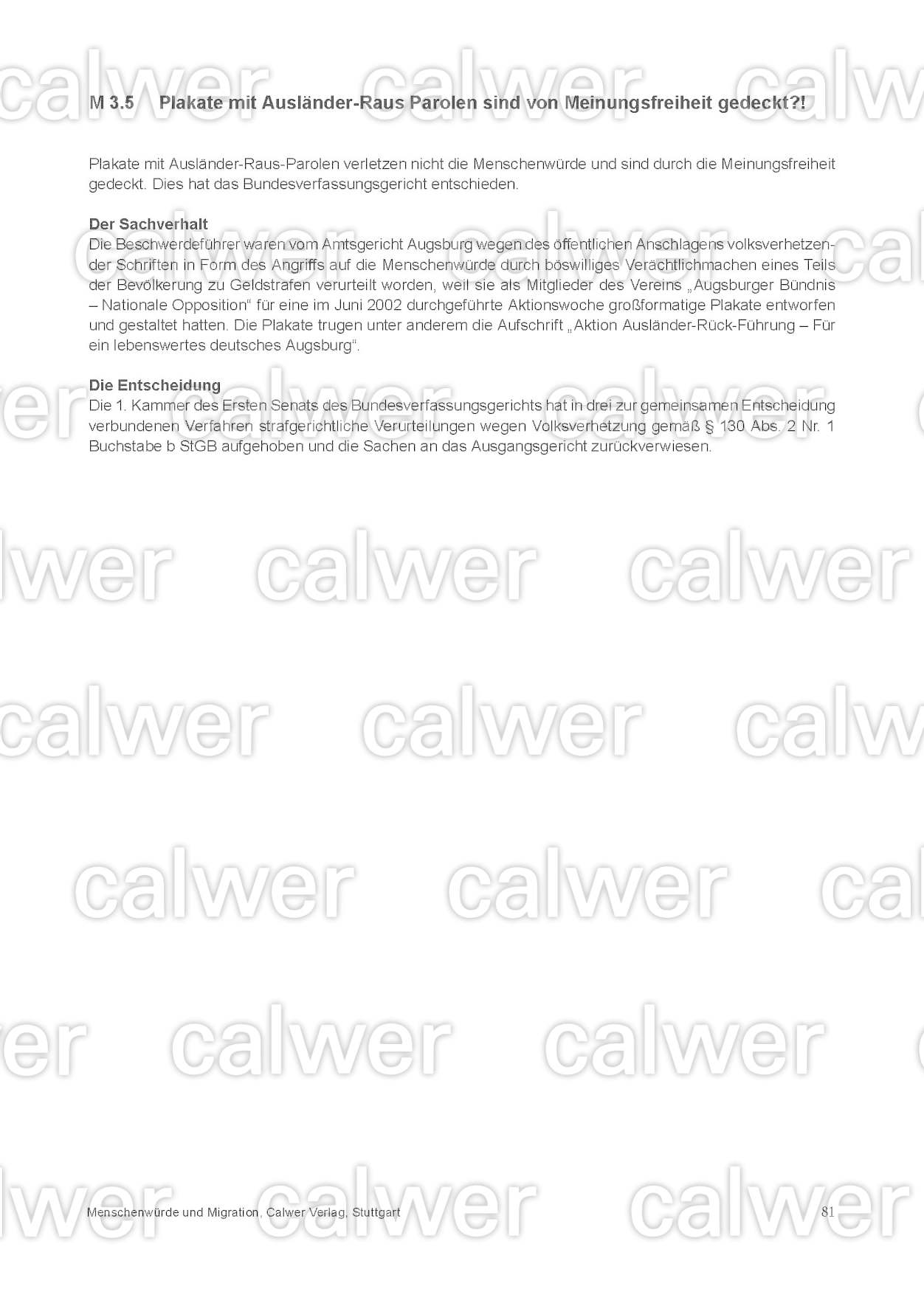 Den vier Unterrichtseinheiten vorangestellt ist eine ausführliche Einführung zum Thema Menschenwürde und Migration. Sie beinhaltet religionspädagogische Ausführungen und Verortung im Bildungsplan. Zudem sind relevante Informationen zum Thema „Migrationsgesellschaft Deutschland“ mit statistischen Zahlen vorhanden.