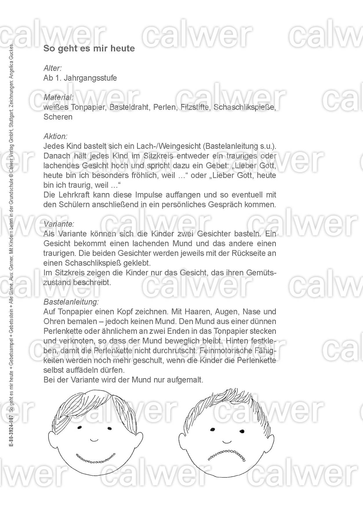 Beim Spiel "So geht es mir heute" drücken die Kinder mit Hilfe gebastelter Gesichter ihre Gefühle aus und formulieren Gebete.