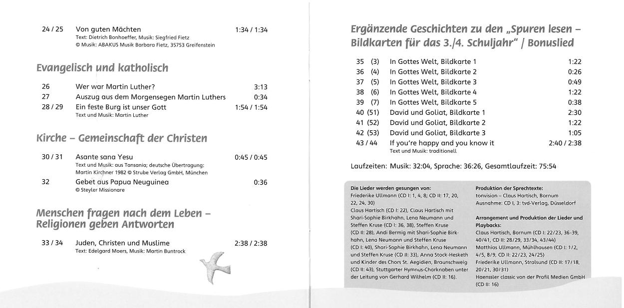 Auf der CD zu "Spuren lesen - Ausgabe für Bayern" für das 3./4. Schuljahr finden Sie die Lieder aus dem Schülerbuch, biblische Geschichten sowie weitere Texte und Gebete. So können Sie die Inhalte des Religionsunterrichts kreativ und kindgerecht vertiefen.