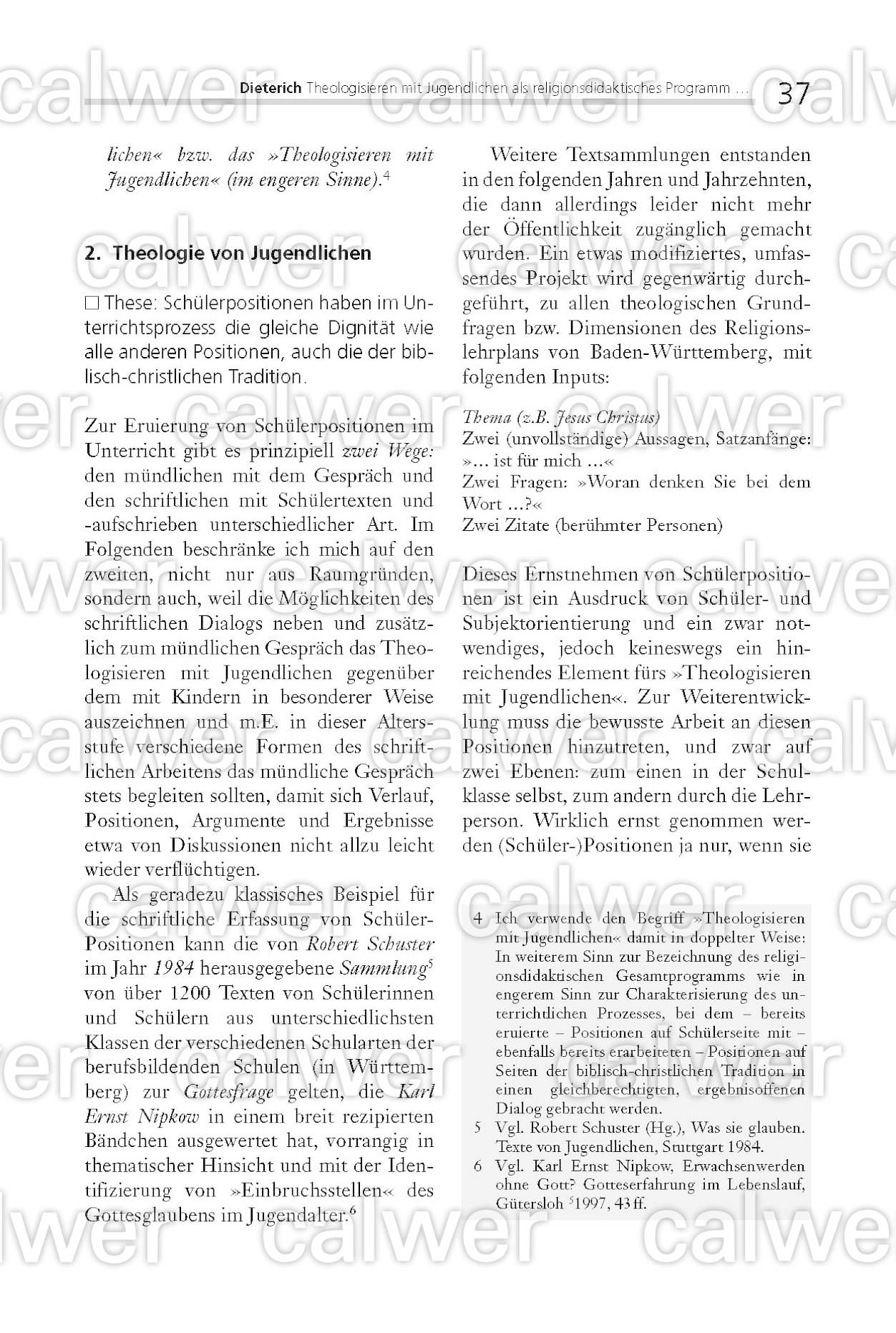 Nachdem die Forschung im Bereich der Kindertheologie seit rund einem Jahrzehnt intensiv betrieben wird, ergeben sich nun auch Grundfragen für die Herausforderungen und Möglichkeiten einer Jugendtheologie. Dabei würde eine bloße Fortführung der bisherigen Studien den Eigenheiten des Jugendalters und seiner theologischen Suchbewegungen nicht gerecht.